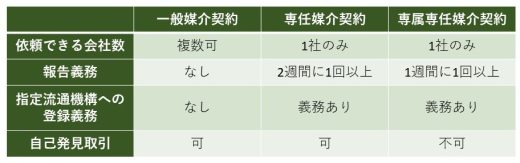 自己発見取引も含め契約を結んだ不動産会社でしか販売できない為、専任媒介契約よりも広告費用などかけられるので、積極的に販売活動を行ってもらえます。3種類の中で優先的に紹介してもらえる可能性が高いです。また、不動産会社からの報告義務の頻度が最も高いのでより販売状況を把握できます。