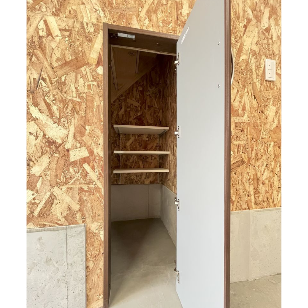 1階倉庫は、傷がつきにくい素材を使用した広々とした空間で