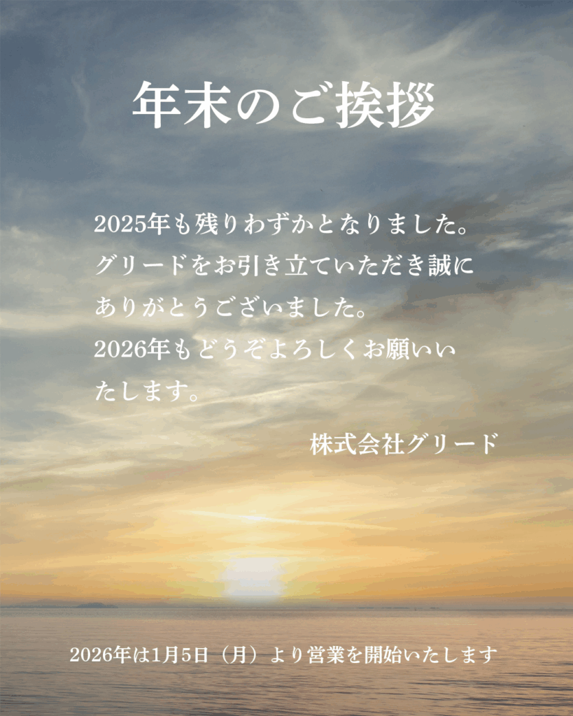 2025年も残りわずかとなりました。グリードをお引き立ていただき誠にありがとうございました。2026年もどうぞよろしくお願いいたします。
